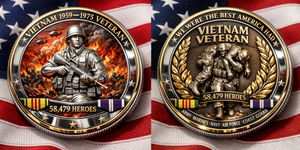 The Vietnam Veteran Tribute Edition Coin is a powerful commemorative piece honoring the brave men and women who served during the Vietnam War (1959–1975).