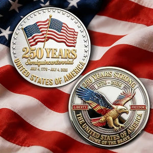 U.S 250th Anniversary Commemorative Coin Celebrating Semiquincentennial with American Flags and Eagle Designs Patriotic Souvenir