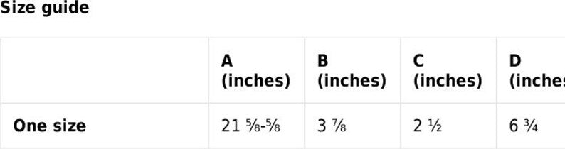 • Head circumference: 21⅝″–23⅝″ (54.9 cm–60 cm)