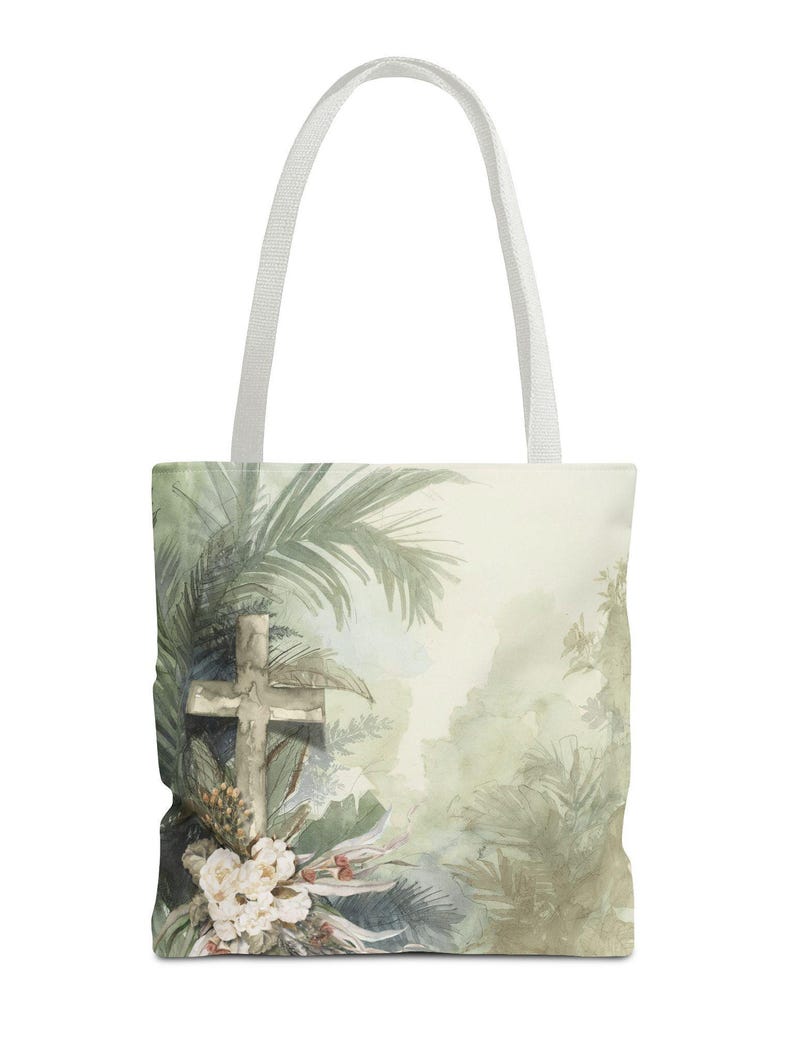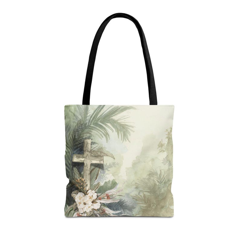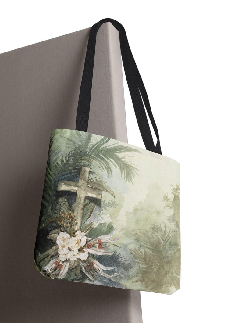 Floral Cross Tote Bag - Faith-Based Christian Gift