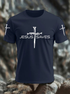 Men's Faith Jesus Saves Print Casual T-Shirt