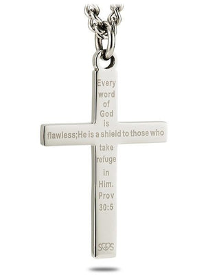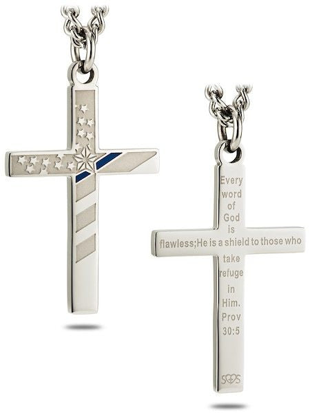 Men's Thin Blue Line Flag Cross Necklace - Proverbs 30:5