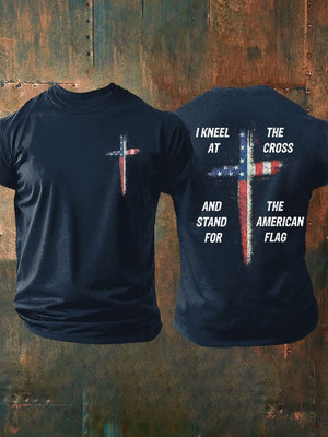 Men's Stand For The Flag Kneel For The Cross Printed Casual T-Shirt