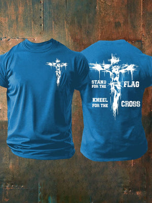 Men's Stand For The Flag Kneel For The Cross Printed Casual T-Shirt