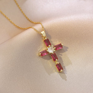 Women’s Cross Necklace Titanium Steel with CZ Inlay Copper Pendant