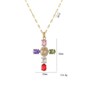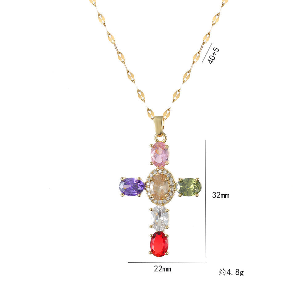 Women’s Gemstone Cross Necklace Faith Jewelry in Titanium Steel