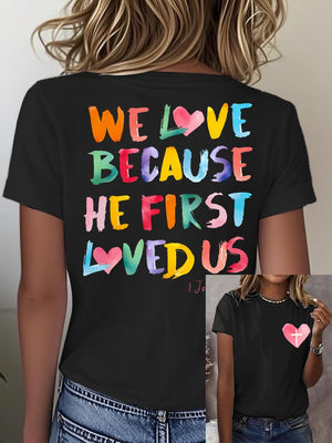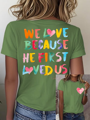 Women's We Love Because He First Loved Us Printed Short-Sleeved T-Shirt